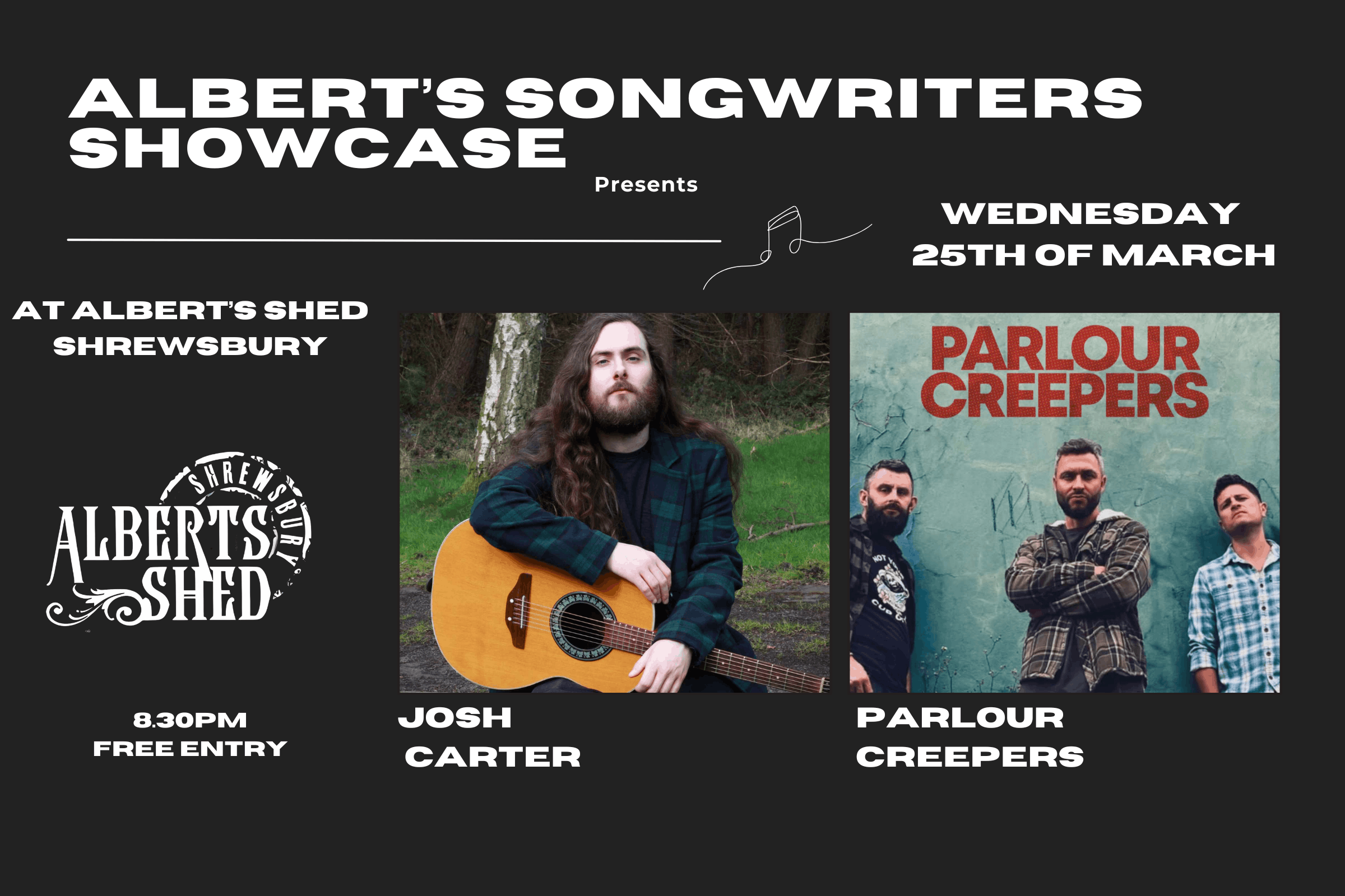 Joining Josh are the mighty Parlour Creepers, a power trio from the Black Country who are making waves in the rock scene with their heavy, grungy sound. Blending elements of stoner, metal, and classic rock, Parlour Creepers are the perfect antidote to a mid-week slump. With their high-energy performance and infectious riffs, they’re guaranteed to get you moving and grooving.