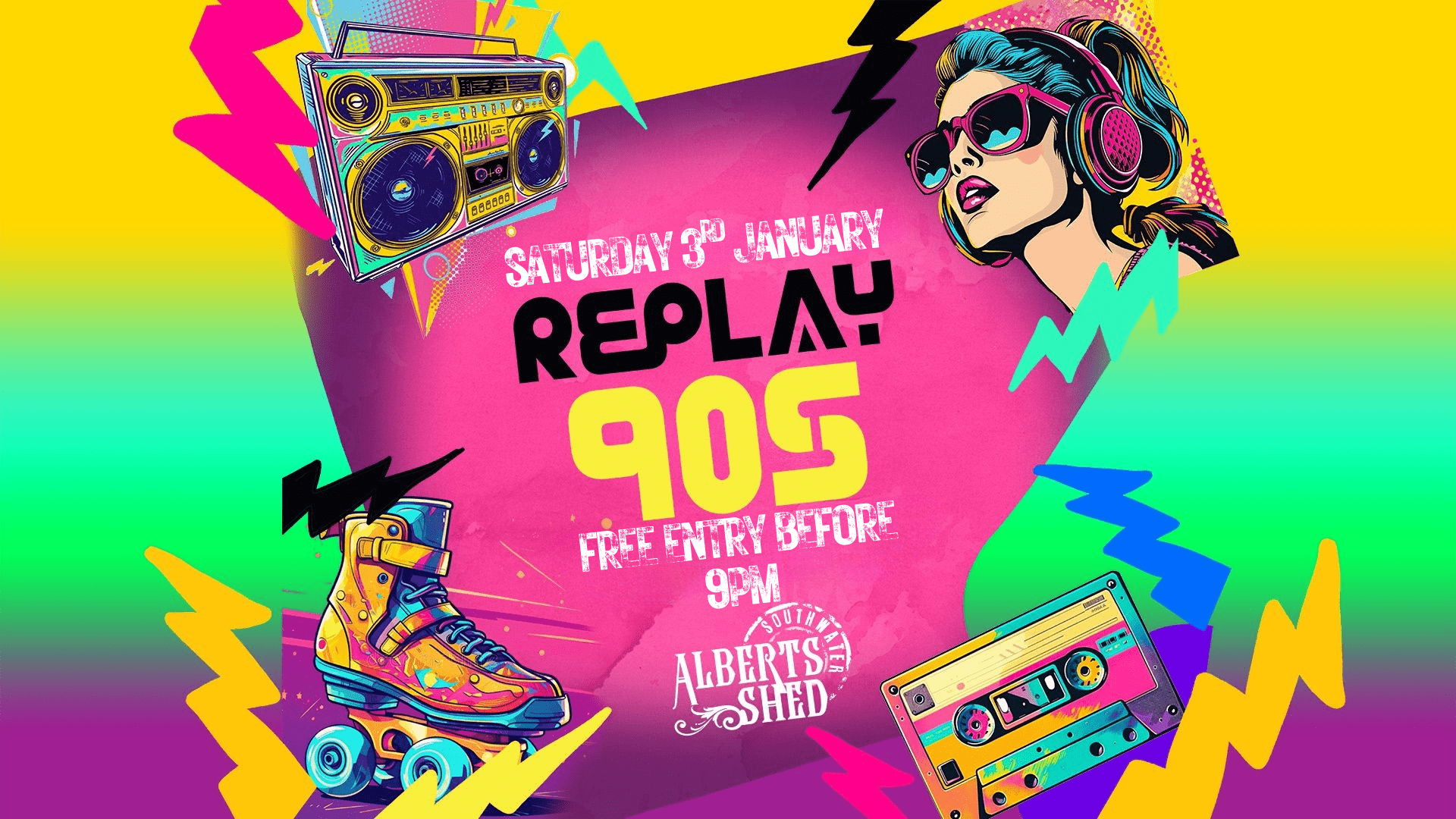 90S REPLAY Please note: we now offer limited number of general entry tickets, disabled access booths (tables 10-14) & VIP area booking (tables 24-27). You can still walk up on the night, but pre-ordering guarantees entry up to 10pm. AGE RESTRICTIONS VIEW THE TABLE GUIDE ×Your Content Goes Here + Add to Google Calendar + iCal / Outlook export Book Event General Admission - £5 Available Tickets: 150 The "General Admission - £5" ticket is sold out. You can try another ticket or another date. Table 10 - 6 People - £30 £ Available Tickets: 1 Includes entry fee and queue jump for six people. The "Table 10 - 6 People - £30" ticket is sold out. You can try another ticket or another date. Table 11 - 6 People - £30 £ Available Tickets: 1 Includes entry fee and queue jump for six people. The "Table 11 - 6 People - £30" ticket is sold out. You can try another ticket or another date. Table 12 - 6 People - £30 £ Available Tickets: 1 Includes entry fee and queue jump for six people. The "Table 12 - 6 People - £30" ticket is sold out. You can try another ticket or another date. Table 13 - 6 People - £30 £ Available Tickets: 1 Includes entry fee and queue jump for six people. The "Table 13 - 6 People - £30" ticket is sold out. You can try another ticket or another date. Table 14 - 6 People - £30 £ Available Tickets: 1 Includes entry fee and queue jump for six people. The "Table 14 - 6 People - £30" ticket is sold out. You can try another ticket or another date. Table 24 - 5 People - £50 £ Available Tickets: 1 Includes entry fee and queue jump for five people. The "Table 24 - 5 People - £50" ticket is sold out. You can try another ticket or another date. Table 25 - 4 People - £40 £ Available Tickets: 1 Includes entry fee and queue jump for four people. The "Table 25 - 4 People - £40" ticket is sold out. You can try another ticket or another date. Table 26 - 4 People - £40 £ Available Tickets: 1 Includes entry fee and queue jump for four people. The "Table 26 - 4 People - £40" ticket is sold out. You can try another ticket or another date. Add to Cart Date 03 Jan 2026 Time 9:00 pm Location Albert's Shed Southwater Southwater, Telford TF3 4BF Category DJsLive MusicSouthwaterSouthwater Gigs BOOKING Share this event January 2026 Jan 02 2026 A1 + DJ EVETT Albert's Shed Southwater Jan 02 2026 DJ GEM Albert's Shed Shrewsbury Jan 03 2026 EGO FRIENDLY Albert's Shed Shrewsbury Jan 03 2026 90S REPLAY Albert's Shed Southwater Jan 06 2026 INTERACTIVE QUIZ NIGHT Albert's Shed Southwater No event found! Load More