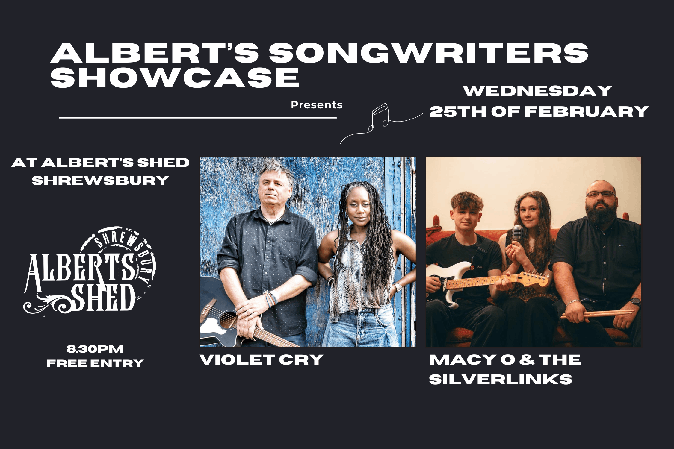 8 Barker St, Shrewsbury SY1 1QJALBERT’S SONGWRITERS SHOWCASE